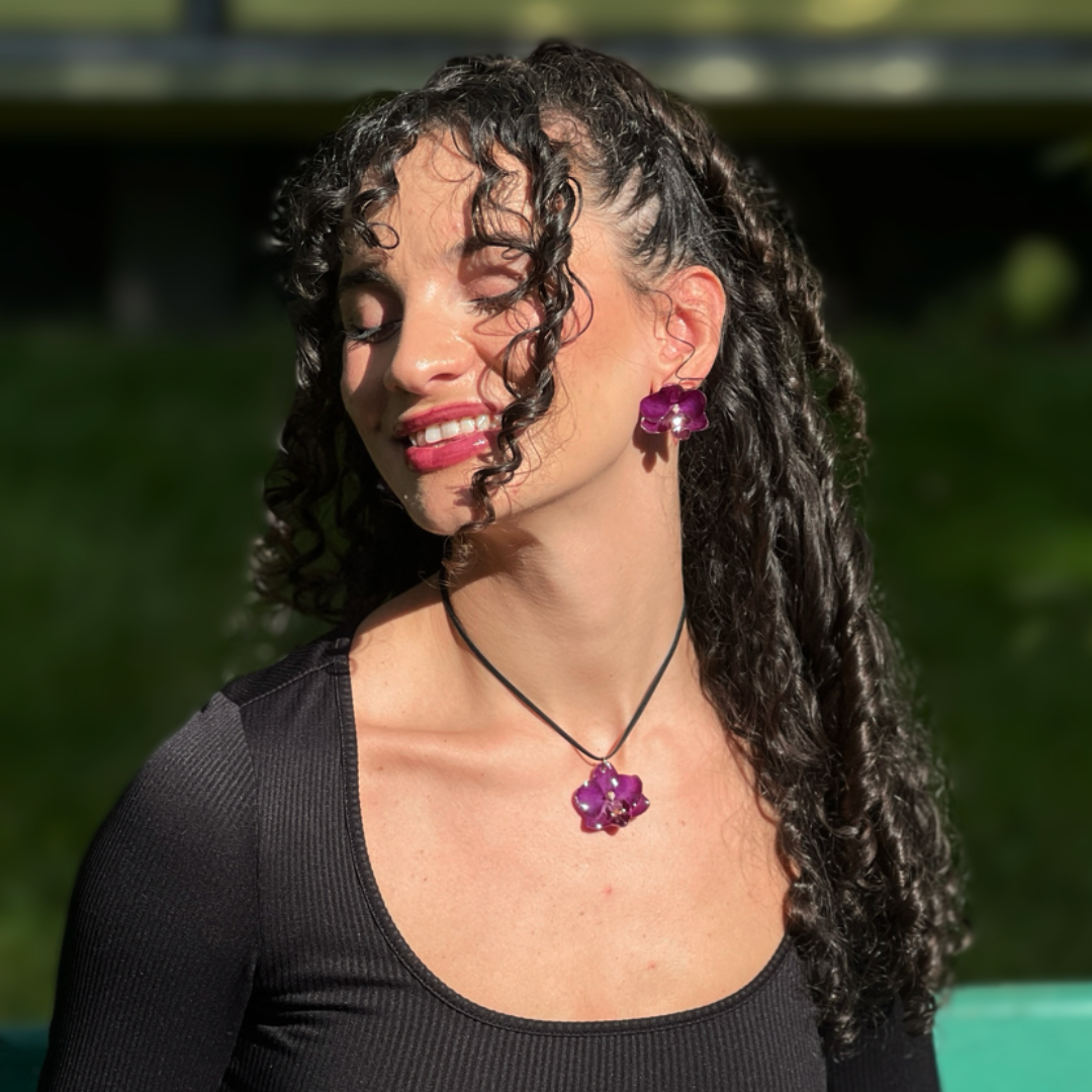 Nasza biżuteria powstaje z prawdziwych, suszonych kwiatów zatopionych w żywicy.